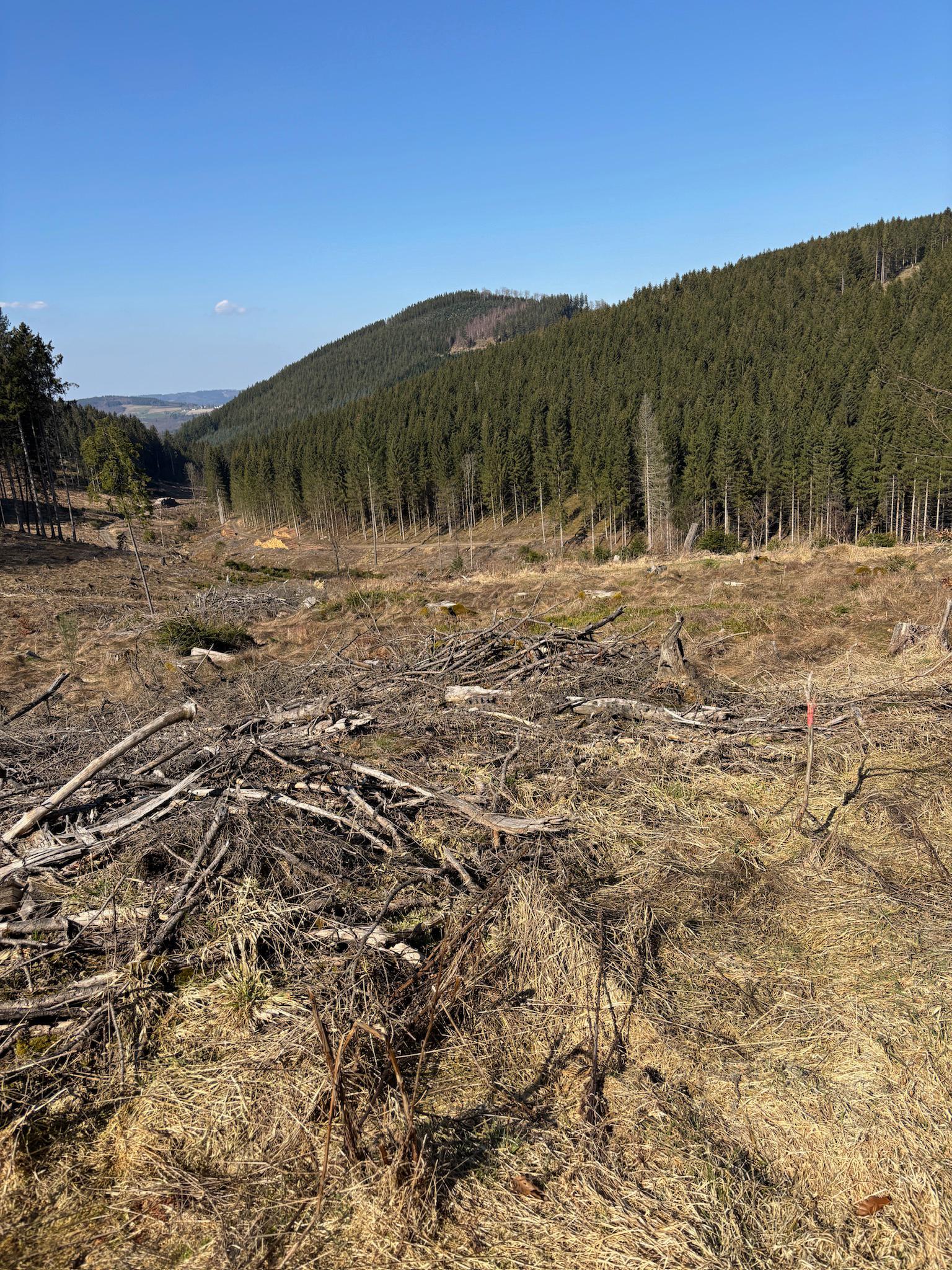 - Bestand: Mix aus Fichten (60–70 Jahre), älteren Buchenbeständen und natürlichen Sukzessionsflächen.